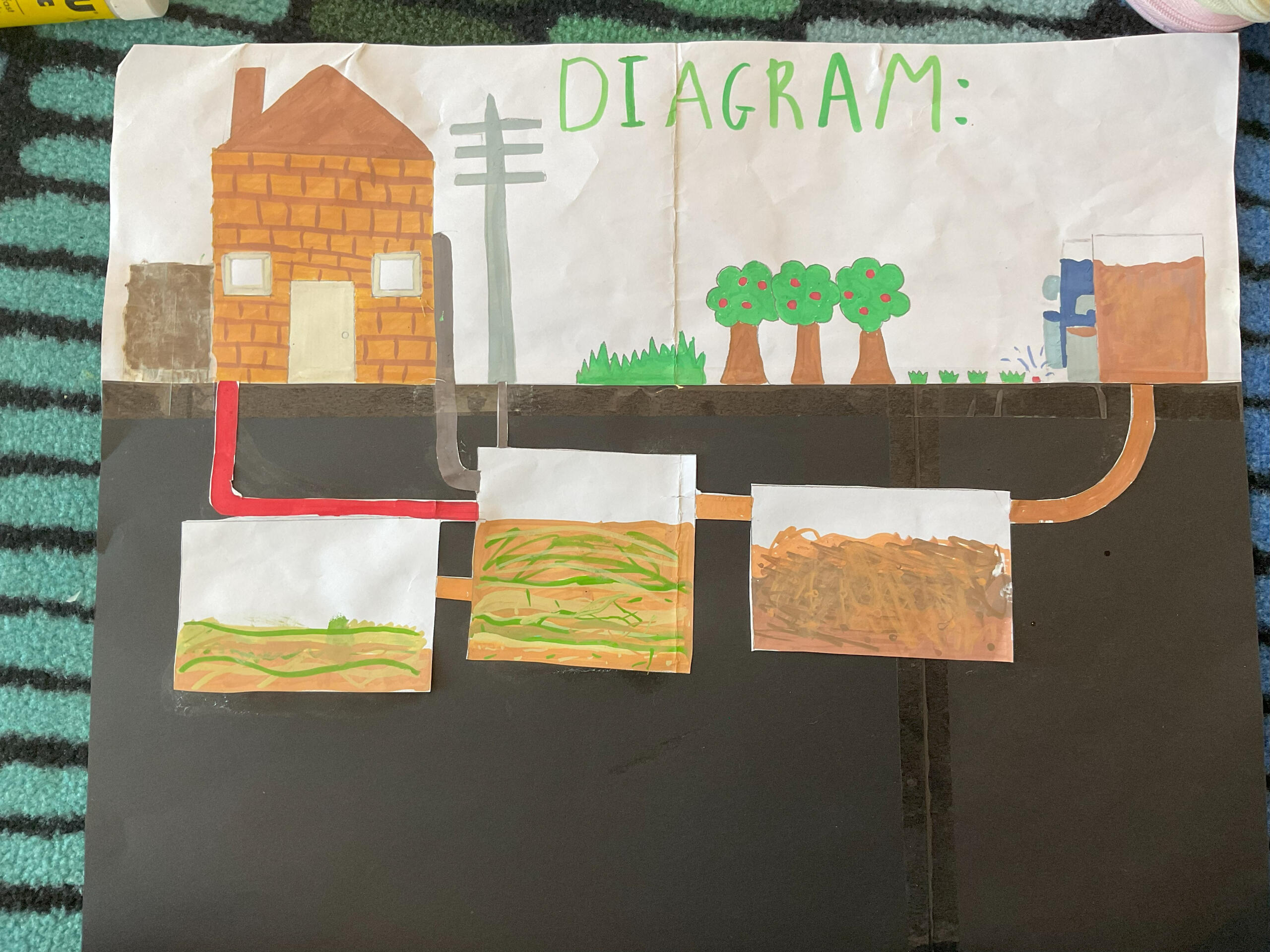 We are using the process of anaerobic digestion to create energy, heat and fertiliser to grow crops more efficiently on a nearby farm.The chutes will be connected to houses with airtight seals and will use AI machine learning to check for any leaks as well as air filtration systems to mitigate the smell of the pipes and food storage, digestate and anaerobic digestion.The anaerobic digestor creates biomethane which is a renewable energy source that will travel to houses using a small transmission tower. The heat from this will also be sent to houses to power flooring.